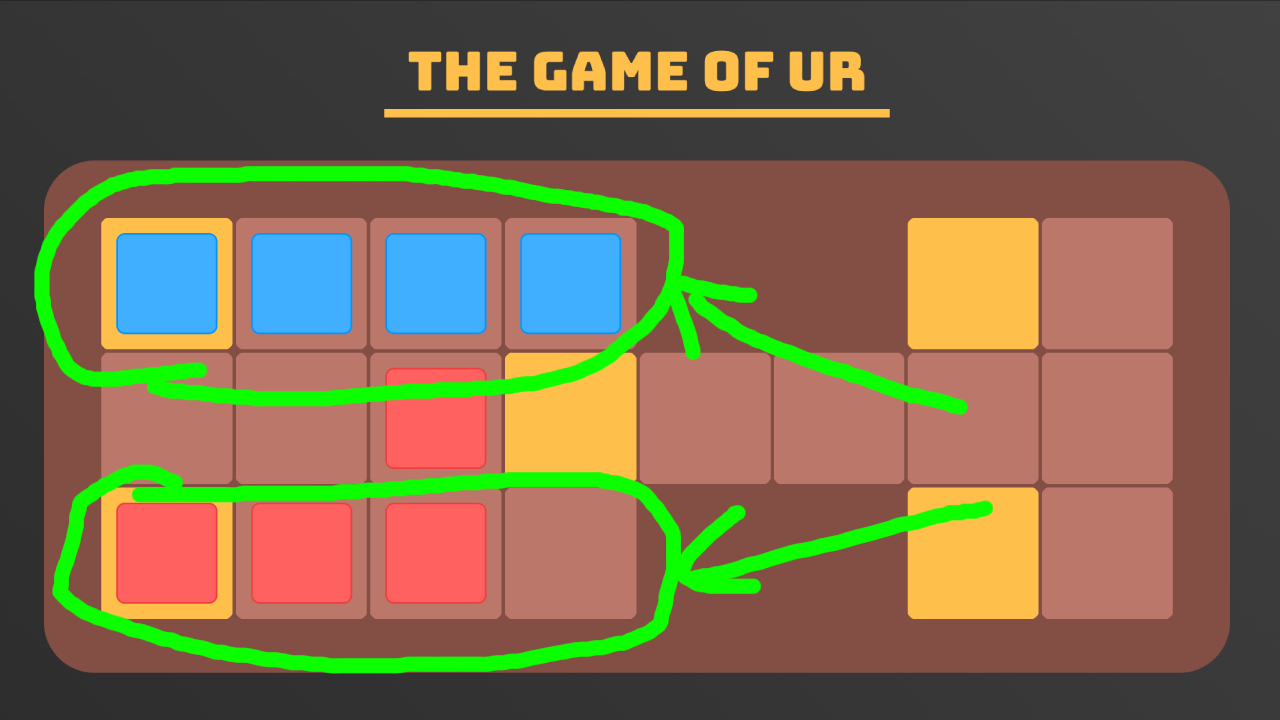 Both players have specific game paths their pieces follow, which can be seen below: