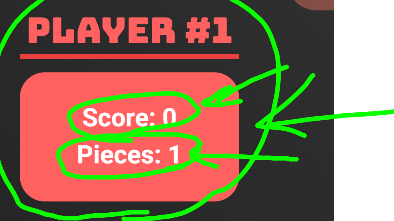 To the left, you will see player #1's info card that displays their score and how many pieces they have left to spawn: