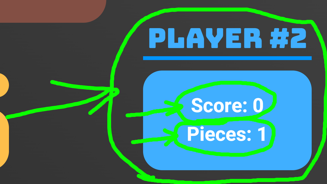 To the right, you will see player #2's info card that displays their score and how many pieces they have left to spawn:
